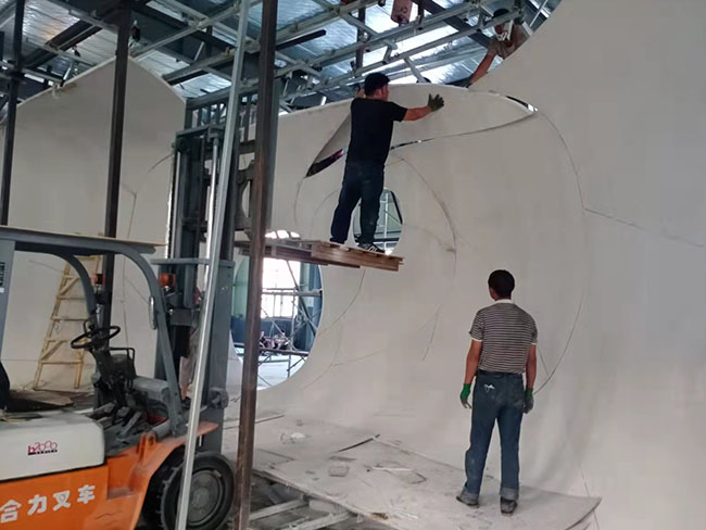 我公司工廠占地面積5000多平方米,公司具有經(jīng)驗(yàn)豐富的產(chǎn)品研發(fā)、設(shè)計(jì)、深化、生產(chǎn)、安裝、管理團(tuán)隊(duì),可為客戶從裝飾設(shè)計(jì)、產(chǎn)品深化設(shè)計(jì)建模、產(chǎn)品生產(chǎn)、現(xiàn)場(chǎng)安裝施工等一整套服務(wù)。